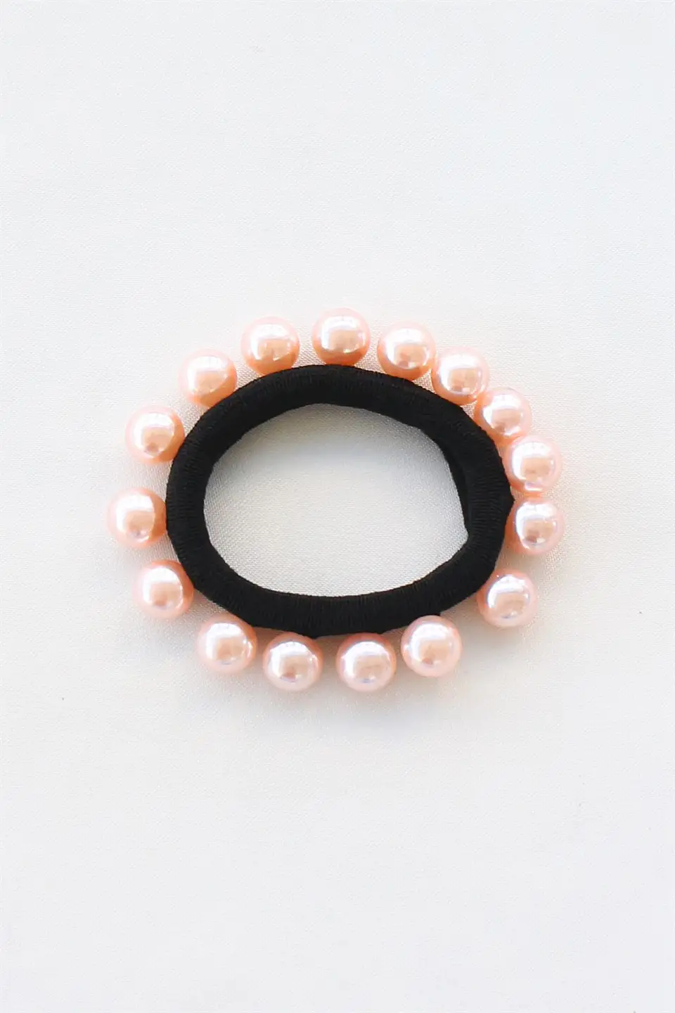 Açık Pembe Renk İnci Detaylı Lastik Toka