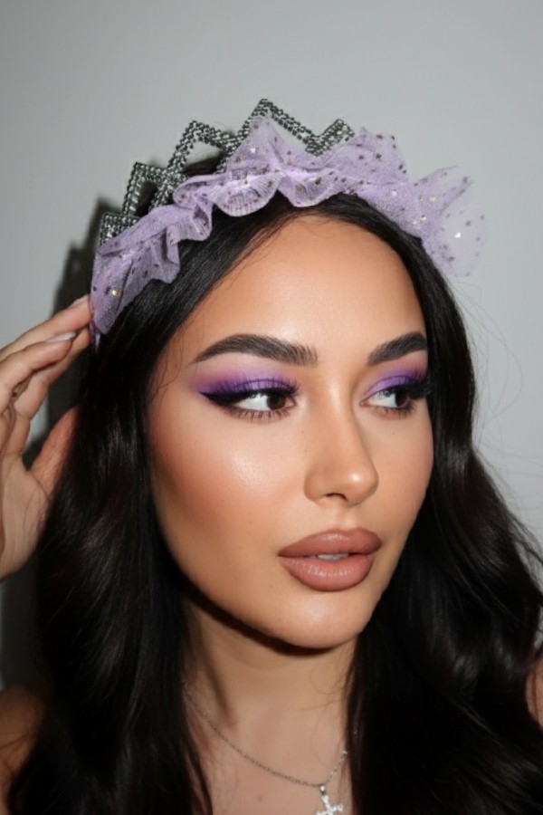 Lila Renk Tül Detaylı Prenses Taç